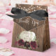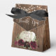 Say thank you with this beautiful favour box. This design features a beautiful burgundy floral bouquet with a rustic pumpkin and wood background. Easily change the names and date! See the entire collection for more matching items!