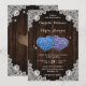 Rustic Wood Purple and Blue Floral Hearts Wedding Invitation