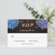 Rustic purple and blue floral wedding RSVP card featuring rustic wood with purple and blue hydrangea flowers. Perfect card design to complement your purple and blue rustic wedding party.