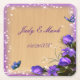 Rustic Wood Purple Floral Butterfly Wedding Square Paper Coaster