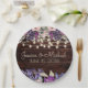 Rustic Wood Purple Floral String Lights Wedding Paper Plate
