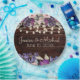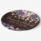 Wedding reception paper plates in a rustic wood design with purple and pink watercolor floral and glittering string lights. Add the couple's names and wedding date.