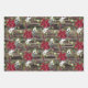 Pretty rustic wood and red poinsettia Christmas holiday wrapping paper 3-sheet collection.