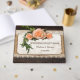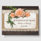 A guest book featuring roses on a rustic wood with burlap and lace background. Perfect for a country or rustic theme wedding.