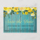 This pretty rustic Save the Date postcard features a blue wood background with trendy typography decorated with a cheerful yellow rose watercolor floral bouquet with green leafing. Customise the font and colour of the text to your liking.