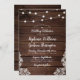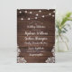 Rustic Wood Script String Lights & Lace Wedding Invitation