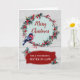 Merry Christmas for sister in law card with rustic country wood pattern and watercolor christmas wreath with winter foliage and bird.
