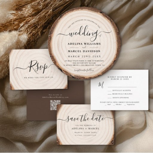 Add a cozy finishing touch to your favors and envelopes with this rustic wedding thank-you sticker featuring a natural wood slice tree ring design and modern script “thank you” text. Personalize the bottom line with your names, wedding date, or short message to create custom labels that match woodsy, barn, and outdoor celebration themes. These round stickers are perfect for sealing invitation envelopes, decorating favor bags and jars, or adding a sweet detail to welcome boxes and out-of-town guest gifts. Mix and match with coordinating tree-ring invitations, RSVP cards, and details inserts for a cohesive rustic wedding stationery suite.