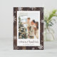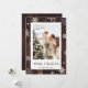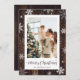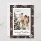 Custom rustic wood photo Christmas cards featuring snowflakes on a snowy rustic wood background. Easily personalise these snowflake photo Christmas cards with your photo and family name.