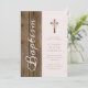 Rustic Wood & Soft Pink Baptism Invitation