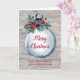 Merry Christmas for son and son in law card with rustic country chalkboard wood pattern and watercolor christmas ornament with winter foliage and holly.