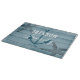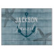 Rustic and elegant blue wood design. Starfish stamp overlay with anchor solid graphic. Custom family name in bold sans serif font and chic script family typography. All text is adjustable. Beautiful design for beach house, vacation home, boat, or nautical themed home decor.