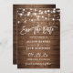 Rustic Country Wood Twinkle Lights Wedding Photo Save the Date Card. For further customisation, please click the "customise further" link and use our design tool to modify this template.
