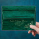 Elegant, modern, country rustic barn wood green 5x7 envelope for wedding invitations with return address, string lights and gold floral lace.