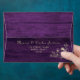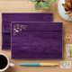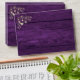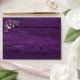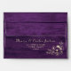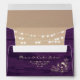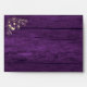 Elegant, modern, rustic barn wood purple wedding invitation 5x7 envelope with return address, string lights and gold floral lace.