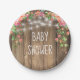 Rustic Wood String Lights Floral Girl Baby Shower Paper Plate