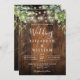 Rustic Wood String Lights Greenery QR Code Wedding Invitation