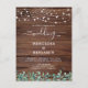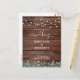 Invite friends and family to your wedding with these elegant yet rustic wood with string lights and eucalyptus greenery wedding invitation cards. These unique rustic county wedding invitations feature elegant white string lights on barn wood with with botanical greenery design with with botanical greenery design with wedding website qr code for easy RSVP's... Personalise these rustic wedding invitations with names, wedding date, and location.  See our wedding collection for unique wedding invitations, wedding photo albums, guest books, party gifts, and more! COPYRIGHT © 2020 Judy Burrows, Black Dog Art - All Rights Reserved. Rustic Wood String Lights Greenery QR Code Wedding Invitation Postcard