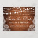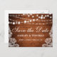 Rustic Wood String Lights Lace Save the Date Announcement Postcard
