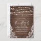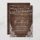 Rustic Wood String Lights & Lace Script Wedding Invitation