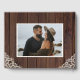 Rustic Wood String Lights Lace Wedding Photo Guest Book featuring a rustic wood background with twinkling strings of lights and vintage style lace in the bottom corners. Add your photo and details for a beautiful, romantic guestbook!