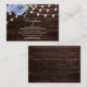 Rustic dark wood with periwinkle blue floral and twinkling string lights wedding reception enclosure card. Contact us for help with customisation or matching products.