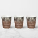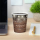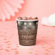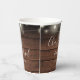 Elegant rustic wedding paper cup personalised with signature style names and your special wedding date on a string lights and wood panels background. Designed by Thisisnotme©