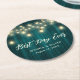 Rustic Wood String Lights Teal Wedding Round Paper Coaster