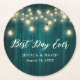 Personalized rustic country teal wedding paper coasters featuring barn wood and string lights. Easily personalize these teal wedding paper coasters with your wedding details. These custom paper coasters are perfect for a teal rustic country, or barn wedding party. Matching items available.