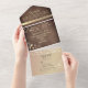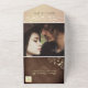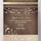 Set the tone for your fall or country wedding with this rustic all-in-one invitation featuring a warm woodgrain background, string lights, and golden floral accents. The twinkle lights and floral illustrations add a romantic, barn-style charm. Includes space for RSVP, guest info, and a full-back photo! A beautiful blend of casual elegance and personalised details.