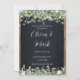 Celebrate your big day with this rustic wedding invitation featuring a chalkboard background, twinkle string lights, greenery, and elegant typography. Perfect for barn weddings, outdoor receptions, and rustic chic celebrations. Fully customisable template with your details.
