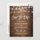 Rustic Wood String Lights Wedding Save the Date Postcard
