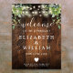 This rustic wood string lights with greenery wedding welcome sign can be personalised with your information in modern typography. Designed by Thisisnotme©