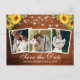 Rustic Wood Sunflower Floral 3 Photo Save The Date Invitation Postcard