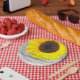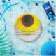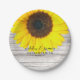 Rustic paper napkin features wood texture, large sunflower and customisable modern and script typography.