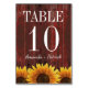 Rustic Wood Sunflower Wedding Table Number Cards