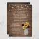 Rustic Wood Sunflowers Burgundy Mason Jar Wedding Invitation. Rustic Wood Baby's Breath String Lights Wedding Invitation