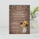 Rustic Wood Sunflowers Burgundy Mason Jar Wedding Invitation