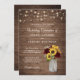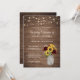 Rustic Wood Sunflowers Burgundy Mason Jar Wedding Invitation. Rustic Wood Baby's Breath String Lights Wedding Invitation