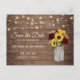 Rustic Wood Sunflowers Burgundy Mason Jar Wedding Save the Date Card. Rustic Wood String Lights Wedding Save the Date Card. Floral Burgundy Sunflowers Wedding Save the Date Card
