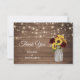 Rustic Wood Sunflowers Mason Jar Wedding Thank You Card