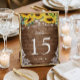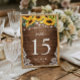 Rustic Wood Sunflowers String Lights Lace Wedding Table Number