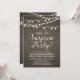 Celebrate your special day with this rustic surprise party invitation! This design features a stylish script typography and light strings on a rustic wood background. Perfect for a garden party, barn party, or any surprise party.