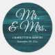 Rustic Wood Teal Mr and Mrs Wedding Classic Round Sticker
