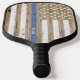 Rustic patriotic wood print USA flag with thin blue line pickball paddle that is personalised with your name.