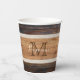 Rustic Wood Tone Monogram Stripe Paper Cups