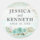 Rustic Wood Turquoise Floral Names & Wedding Date Classic Round Sticker