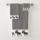 Rustic wood walking moose grey bath towel set for home, cabin, camper, tiny house, or bed and breakfast accommodation.