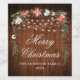 Elegant Watercolor Poinsettia Floral Merry Christmas Wine Bottle Label includes beautiful watercolor red poinsettias, botanical greenery, winter foliage, holly berries, white roses, cotton, pine cones and blue berries. Rustic Country Wood and String Lights.