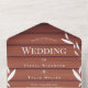 A rustic wood all-in-one wedding invitation. This invitation has a brown wood background and is decorated with white leaves. It includes the invitation as well as a tear-away RSVP card. Simply add your information, add this invite to your cart, and enjoy your beautiful wedding.